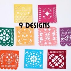 Cada panel SVG de papel picado mide 15 x 15 cm, lo que los convierte en la opción perfecta para guirnaldas, pancartas o hasta proyectos personalizados cortados con láser. Este paquete incluye nueve diseños únicos, cuidadosamente inspirados en los estilos tradicionales del Día de Muertos y otras fiestas mexicanas. Adorna tus eventos con detalles significativos que capturan la esencia de una cultura rica en historia y arte.